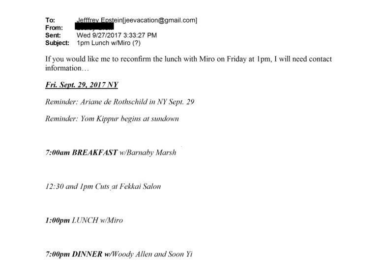 4 mesiace pred epsteinovým zadržaním a následnou samovraždou, je Miro (ako epstein uvádza lajčáka v komunikácii) uvedený ako kontakt pre epsteinovho právnika v prípade že by sa niečo stalo.